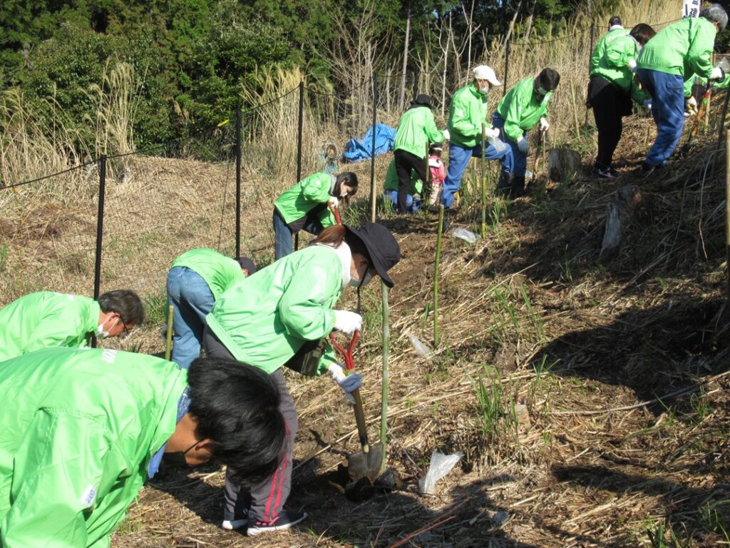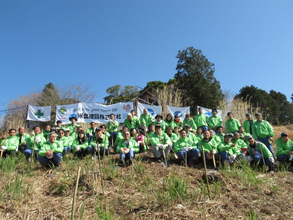 米盛建設㈱ 代表取締役社長 米盛 庄一郎をはじめ、米盛グループ社員及び家族他51名、かごしま緑の基金事務局から2名が参加し、「100 年前の緑の森へ」として広葉樹 5種(クリノキ、ヤマサクラ、イチョウ、ヤマモミジ、アラカシ)300本の苗木を植栽しました🌱